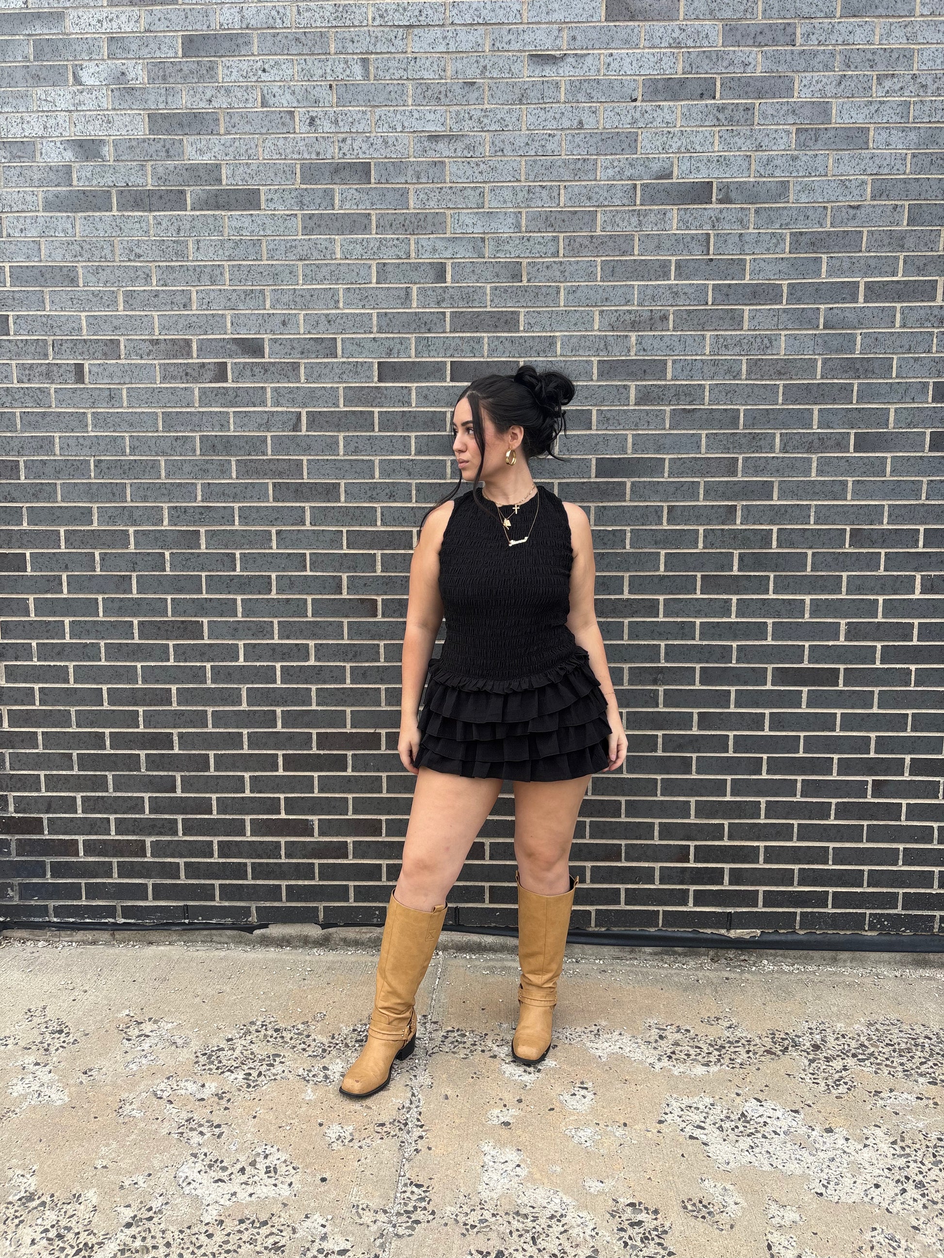 Step into effortless charm with our Bellamena Smocked Ruffle Mini Dressm the perfect blend of playful and chic. Designed with a flattering smocked bodice and feminine ruffle accents, this mini dress is ideal for outings, casual dates, beach vacations, or layered looks. The lightweight fabric and soft lining keep you comfortable while maintaining a stylish silhouette.
