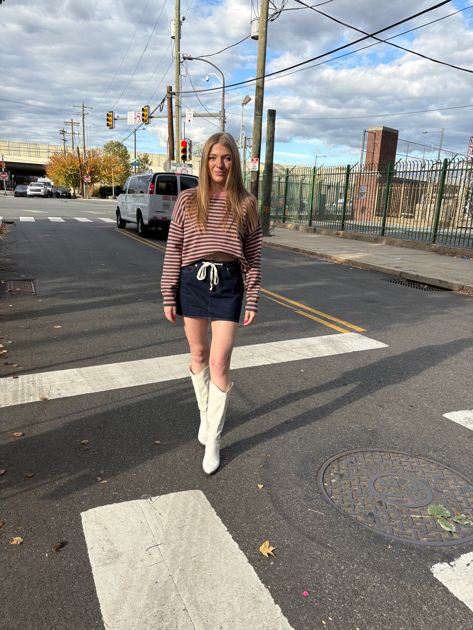 Perfect for all occasions this Lily Drawstring Mini Denim Skirt is a must-have piece that pairs effortlessly with any top for a cute, laid-back look.